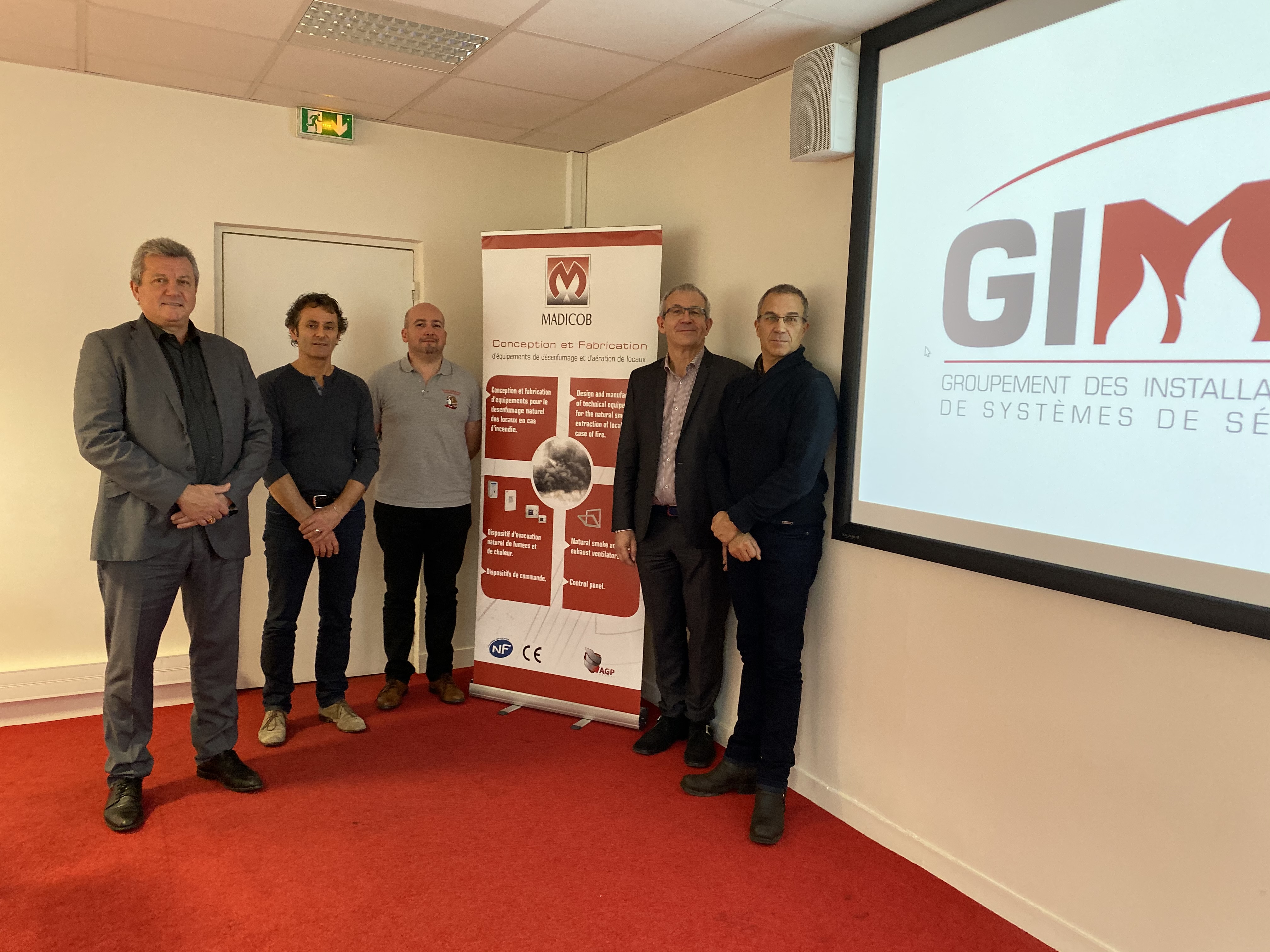 La société MADICOB a accueilli le 17 décembre dans ses locaux de Saint-Ouen L’Aumône, une première session de formation « CQP installateur mainteneur de systèmes de désenfumage naturel » (niveau IV). Les deux candidats angevins présents, Yves Dofeau et Loïc Girard, technico-commerciaux dans le domaine de la sécurité incendie, se sont formés en amont (e-learning) pendant plusieurs semaines afin de se préparer à l’obtention de ce diplôme. Cette formation est portée par le GIMSSI, le groupement des professionnels de l’incendie, membre de la FFB. Les deux collaborateurs de la société Saint-Bernard Protection, se sont engagés dans cette certification afin d’acquérir des compétences supplémentaires, d’augmenter leur expertise et de pouvoir ainsi apporter des conseils plus pointus aux clients. Ils étaient accueillis par Frédéric Anfray, dirigeant de Madicob et Jean-Charles Du Bellay, chef du département sécurité incendie FFB.