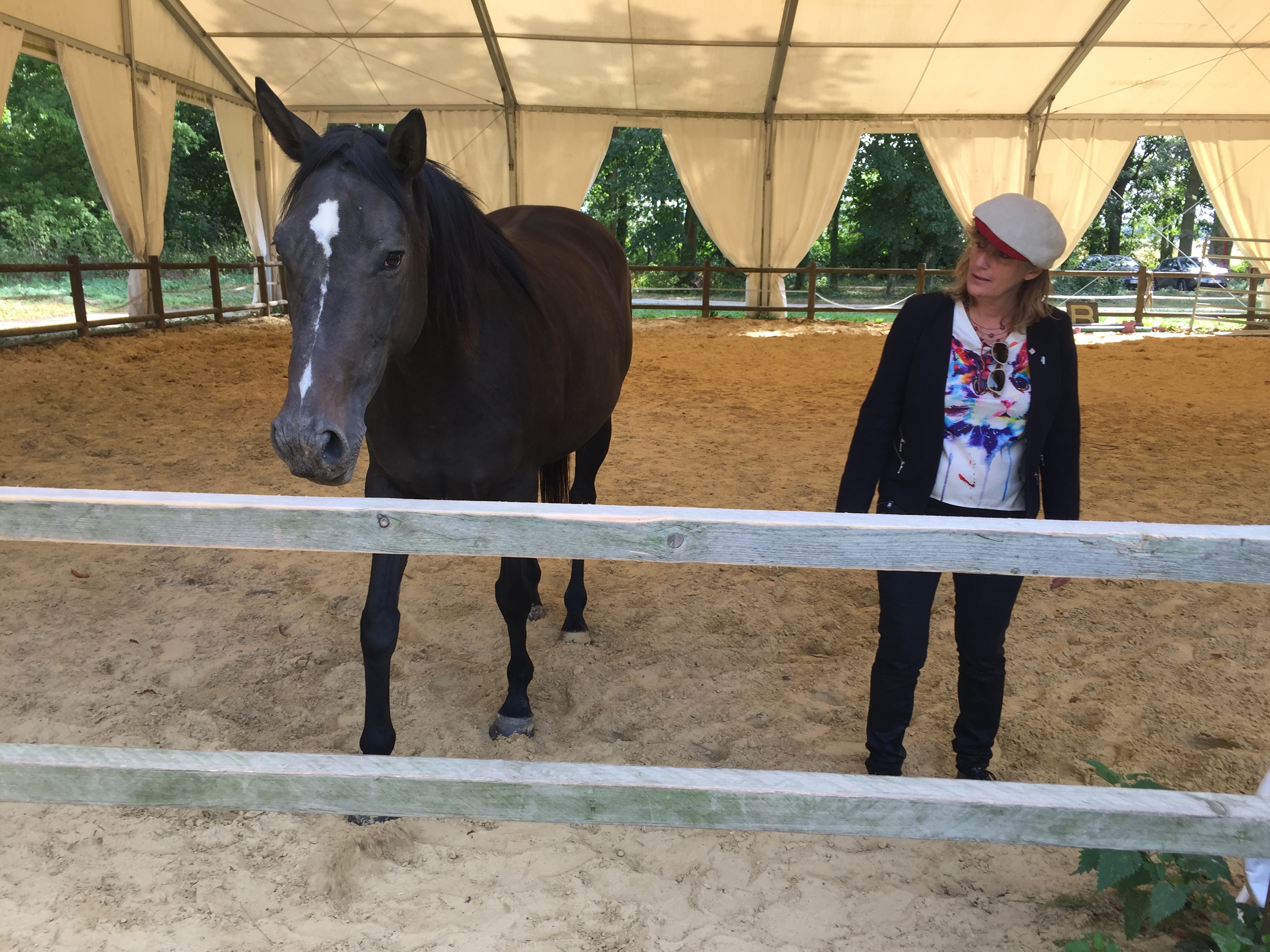 Eric nous a permis de tester d’autres exercices en faisant trotter et galoper le cheval, dans un sens, puis dans l’autre. Cette fois, nous nous sommes aidés d’une chambrière, réel prolongement du bras qui permet à la fois de conserver une distance de sécurité avec le cheval, de lui insuffler l’énergie nécessaire à chaque allure et de le diriger. Les directives et les messages se doivent d’être clairs et fermes pour l’inciter à s’exécuter. Encore une fois, l’expérience est très intéressante. On se découvre un peu plus, on décrypte les points de blocage qui peuvent exister grâce aux réactions du cheval, révélateur de comportement. Et celles-ci ne trompent pas !